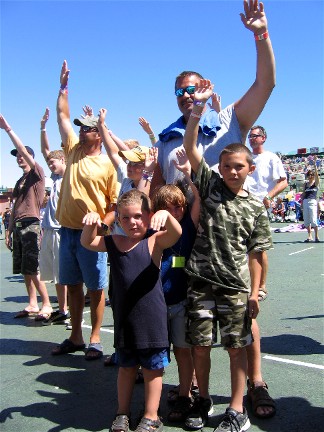 Newsboys above and below and KJ 52 to the left, teaching the youngins the disco. |