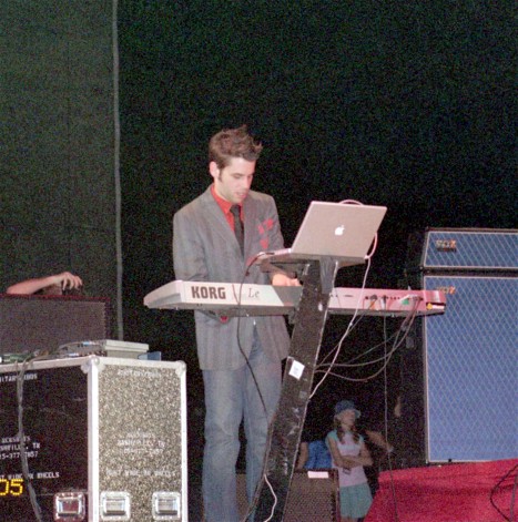 Michael Gungor and brothers on stage. Brother Ross on keyboard and Brother David on bass. |
