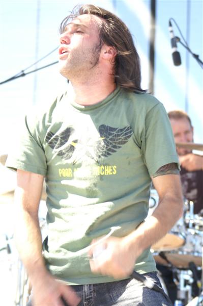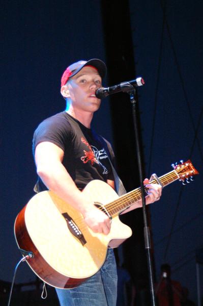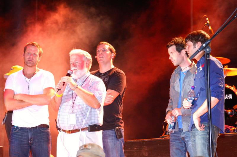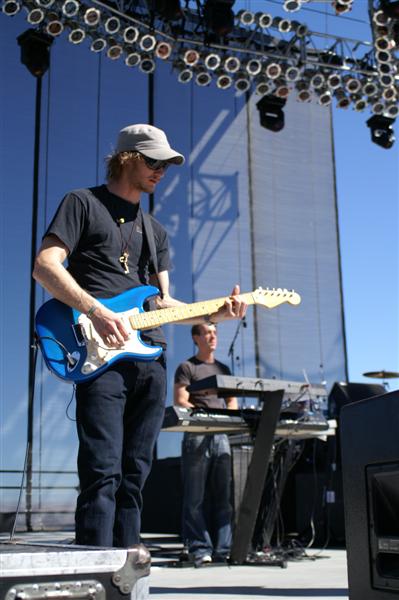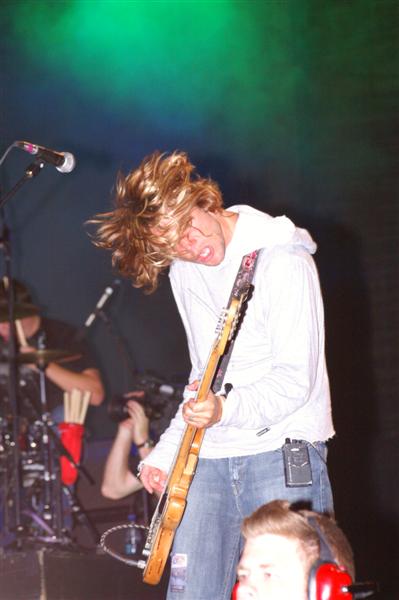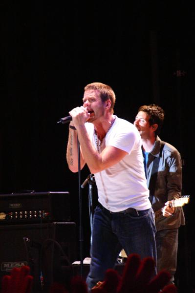 Kutless on stage and in the press area.