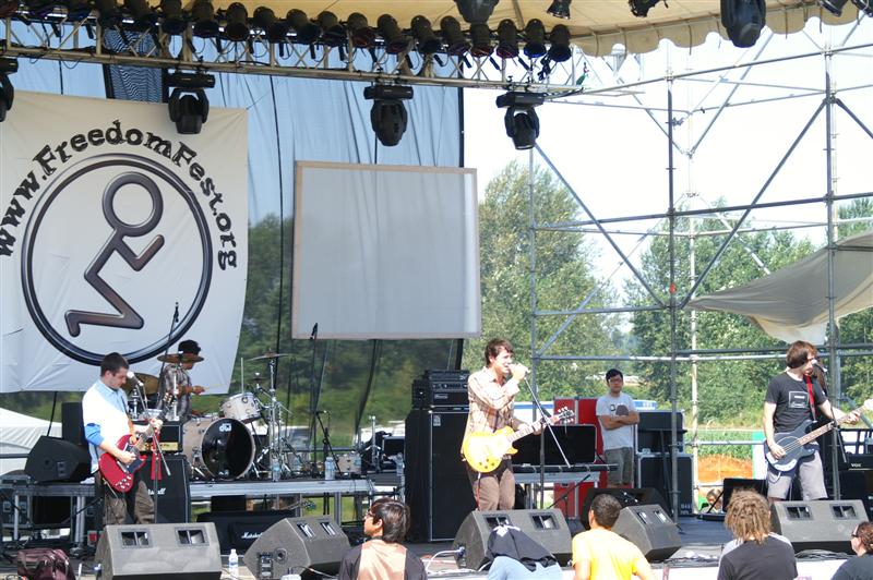 | Rock and Roll Worship Circus plays Freedom Fest. Zurn rejoined Gabe on stage for a reunion of the Circus (now known as The Listening). Jason and Joey helped them cover many of the RRWC tunes from the albums "Beautiful Glow" and Welcome to the Rock 'n' Roll Worship Circus. These guys did a great job. It was great to see Zurn after missing him for a few years, seems like forever. | ![]() |