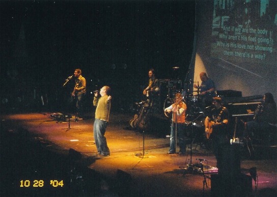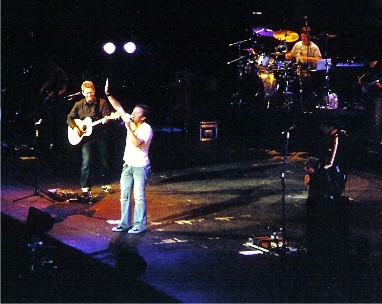 Steven Curtis Chapman took the stage and asked if we had anything left after Chris as Chris had the place hopping. Steven's band was awesome, here is who they are: Justin York on guitar, Will Denton on drums, Scott Sharif on the keyboard, Adam Lester on guitar, and Adam Nitti on bass guitar. They sounded great! Steven talked about the latest addition to his family, they had adopted another little one. Steven went on and on about his family...he said the concert critics had criticized the amount of time he had spent talking about his family so he was cutting back, only 30 minutes instead of an hour. What else Steven talked about was how earthly adoptions are a picture of heavenly adoption, ours with God and how we are His children because of what Jesus did.